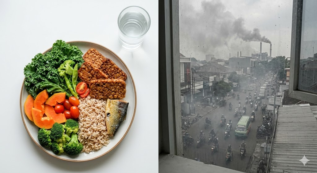 Mencegah meningkatnya polusi udara tentu diperlukan tatanan dan kebijakan yang sistematis baik pemerintah hingga warga Masyarakat. Pengurangan polusi dapat memberikan dampak yang positif bagi kesehatan serta meningkatkan usia harapan hidup. Apakah pola makan turut memberikan kontribusi pencegahan penyakit karena polusi? Tentu saja jawabnnya benar sekali.