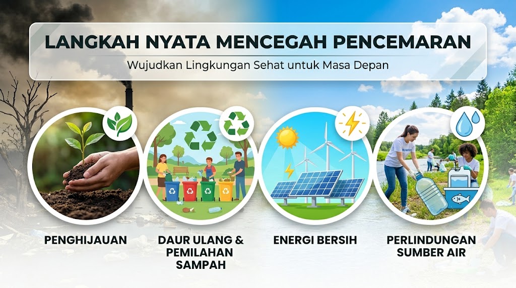 Mengatasi pencemaran lingkungan membutuhkan kerja sama semua pihak, mulai dari individu, keluarga, komunitas, hingga pemerintah. Kebiasaan kecil sehari-hari, seperti membuang sampah pada tempatnya, menghemat energi dan air, serta menggunakan produk ramah lingkungan, bisa membantu menjaga bumi tetap sehat.